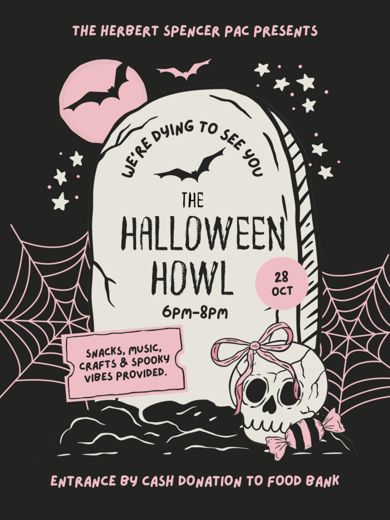 Come join us on Tuesday, October 28th from 6–8pm at Herbert Spencer for a frightfully fun evening packed with snacks, music, crafts, and all the spooky vibes.