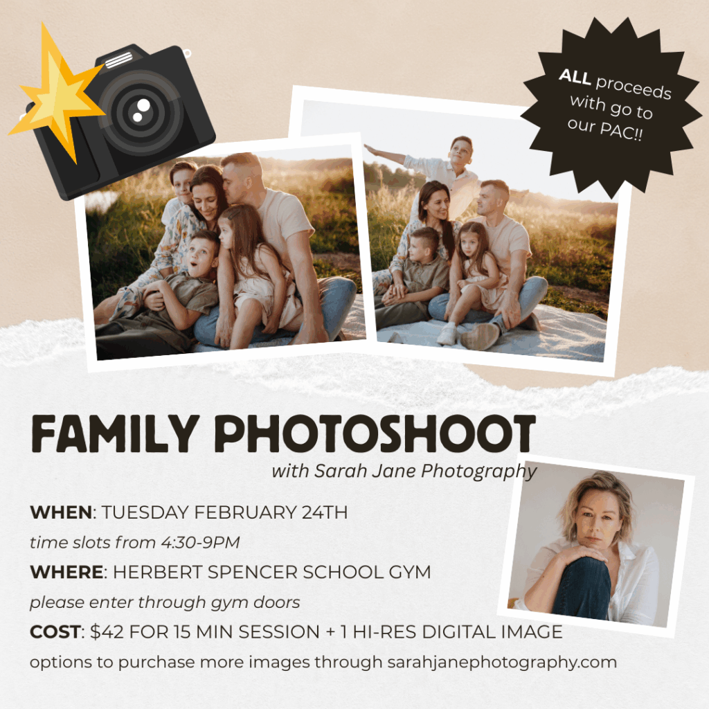 Book a beautiful keepsake photo while supporting our school! Sarah Jane Photography will be hosting a special family photoshoot evening—and your furry family members are welcome too!