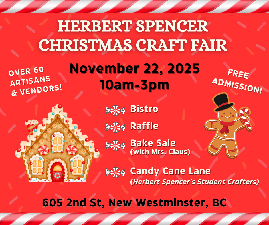 This popular community event & fundraiser for our school will be showcasing 60+ amazing professional artisans & vendors, a sweet bake sale with Mrs. Claus, bistro with tasty food and drinks, & Candy Cane Lane: featuring unique goods made by our very own Herbert Spencer student crafters!